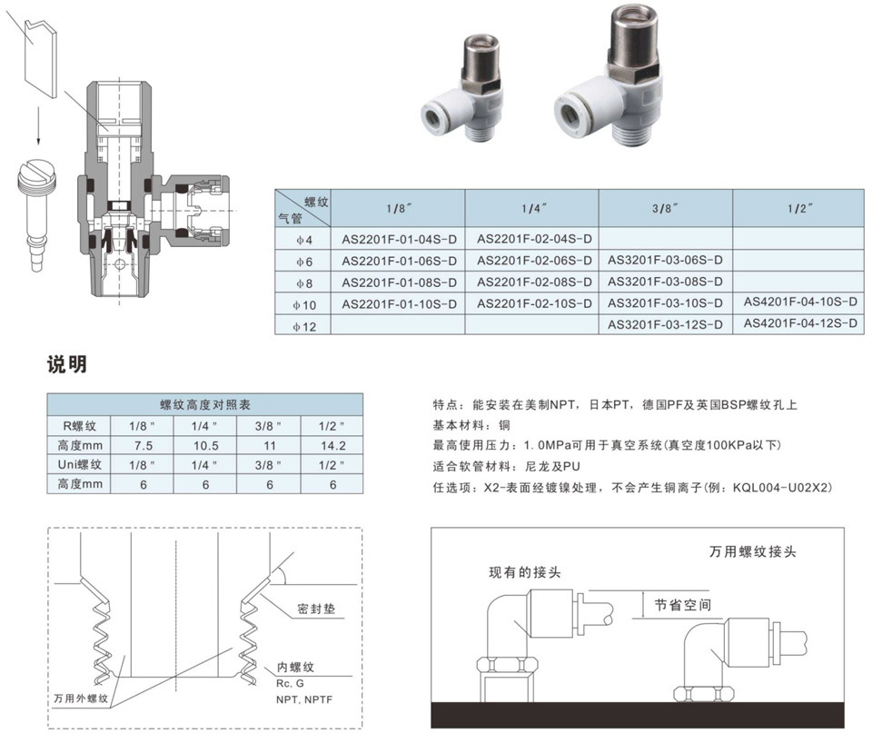 速度阀/用螺丝刀调节:AS**01F-D